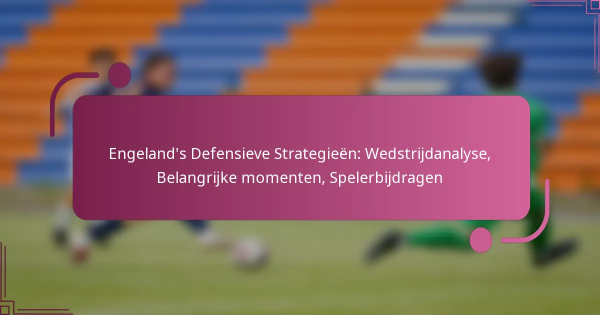 De verdedigingsstrategieën van Engeland zijn gebaseerd op gestructureerde formaties en gedefinieerde spelersrollen, waardoor het team effectief kan inspelen op verschillende aanvallende dreigingen. Recente wedstrijdanalyses onthullen belangrijke momenten die zowel de sterke punten als de kwetsbaarheden van hun verdediging benadrukken, en benadrukken de cruciale rol van individuele spelersbijdragen bij het handhaven van een solide verdedigingslinie. Door sterke prestaties en strategische besluitvorming streeft Engeland ernaar een samenhangend geheel te creëren dat in staat is om hoge druk situaties te weerstaan.