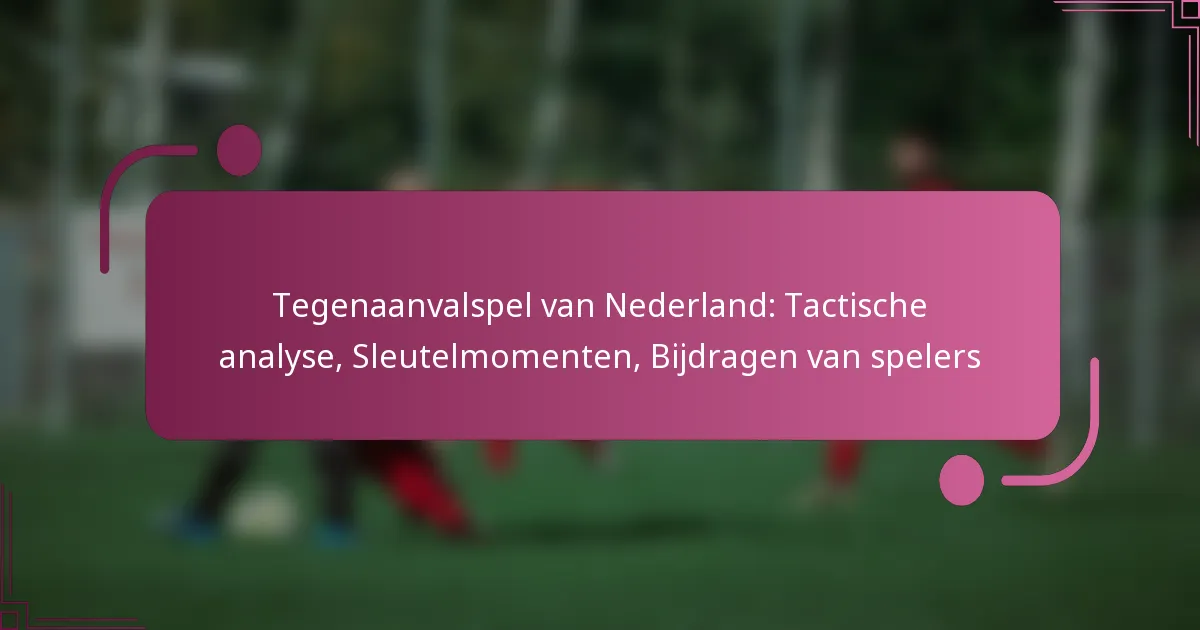 Tegenaanvalspel van Nederland: Tactische analyse, Sleutelmomenten, Bijdragen van spelers